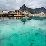 Hotel Sakrisoy Rorbuer se nachází 2 km od Reinebringen a nabízí půjčky na kola a restauraci. Tento hotel se nachází hned vedle Sakrisøy a 10 minut chůze od centra města Reine.